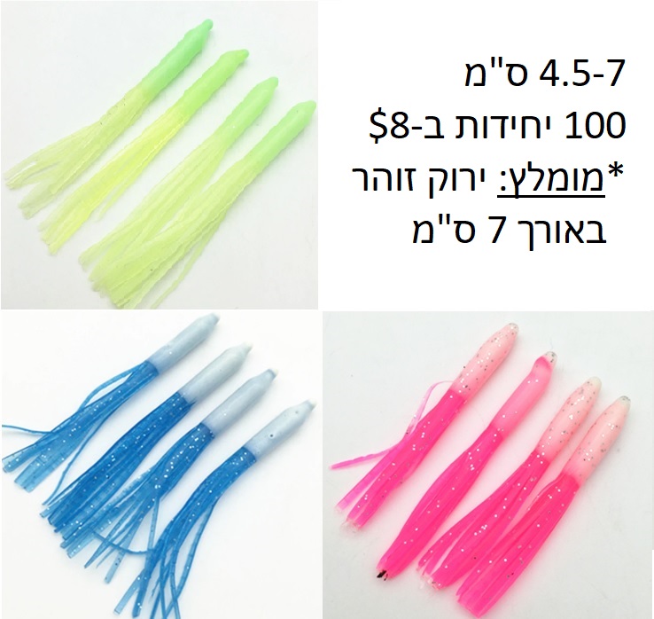 סקווידים 5 ס”מ מנצנצים וזוהרים בחושך 10 יחידות ב-1.8$ (מומלץ שקוף ירוק/שקוף לבן)